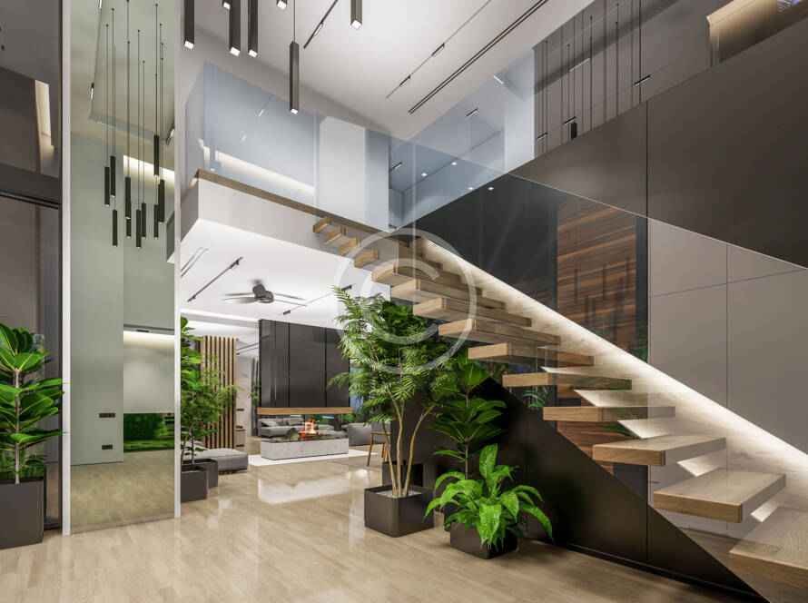Organic elements in a contemporary living room